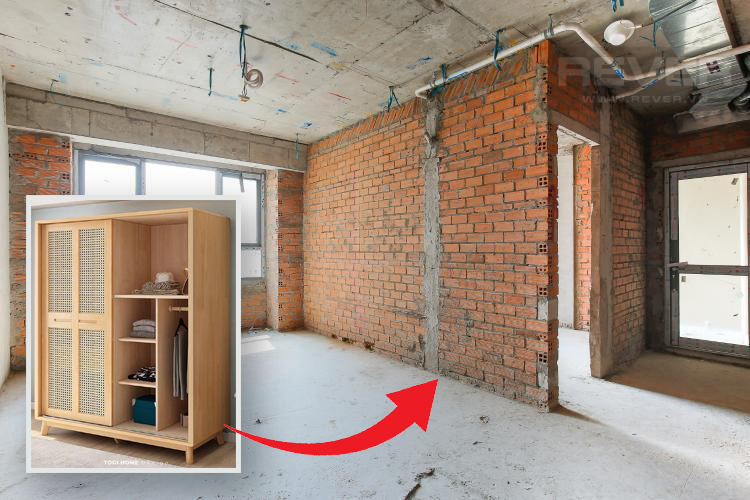 Trang trí nội thất cho nhà thô mới nhận theo phong cách Scandinavian để phù hợp kiểu tủ quần áo mua sẵn.