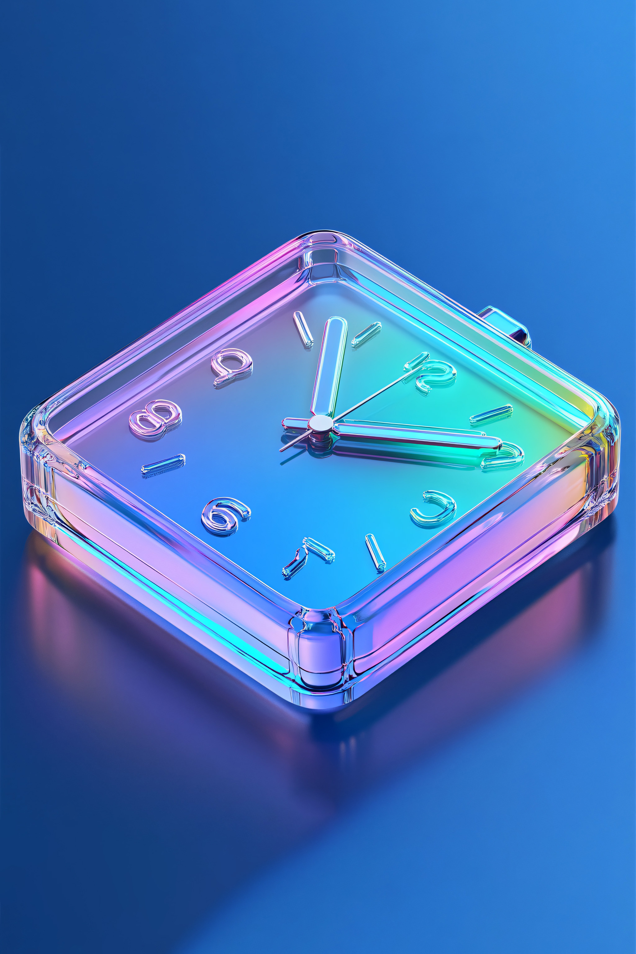 3d clockalarm icon, glass, isometric perspective, 45 degree angle, 4k, uhd, blue and green gradient --s 250