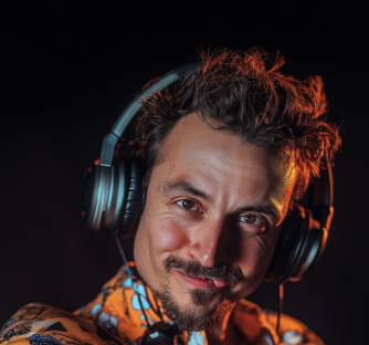 Ghép mặt người thật vào tranh bìa mới vẽ: A happy man with headphones https://s.mj.run/OGYm3BI9tIM he is smiling extremely with his mouth open, a bit crazy facial expression –v 6.1
