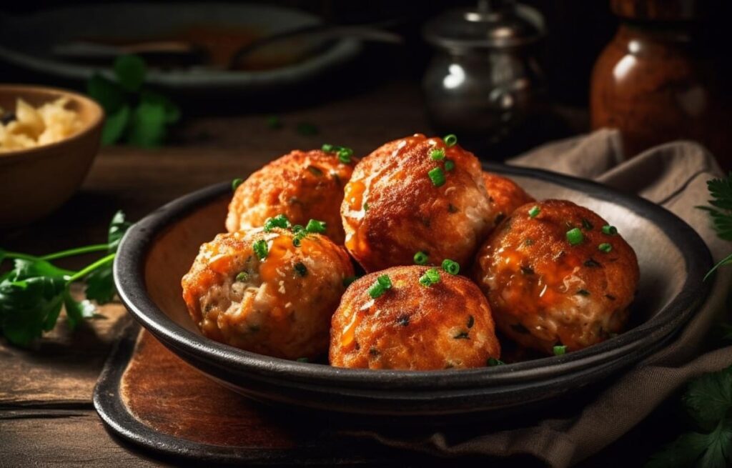 Photo for the recipe for fish meatballs, soft-focus, richly layered, stockphoto, 8k –ar 725:362 –v 5 –s 750 –q 2