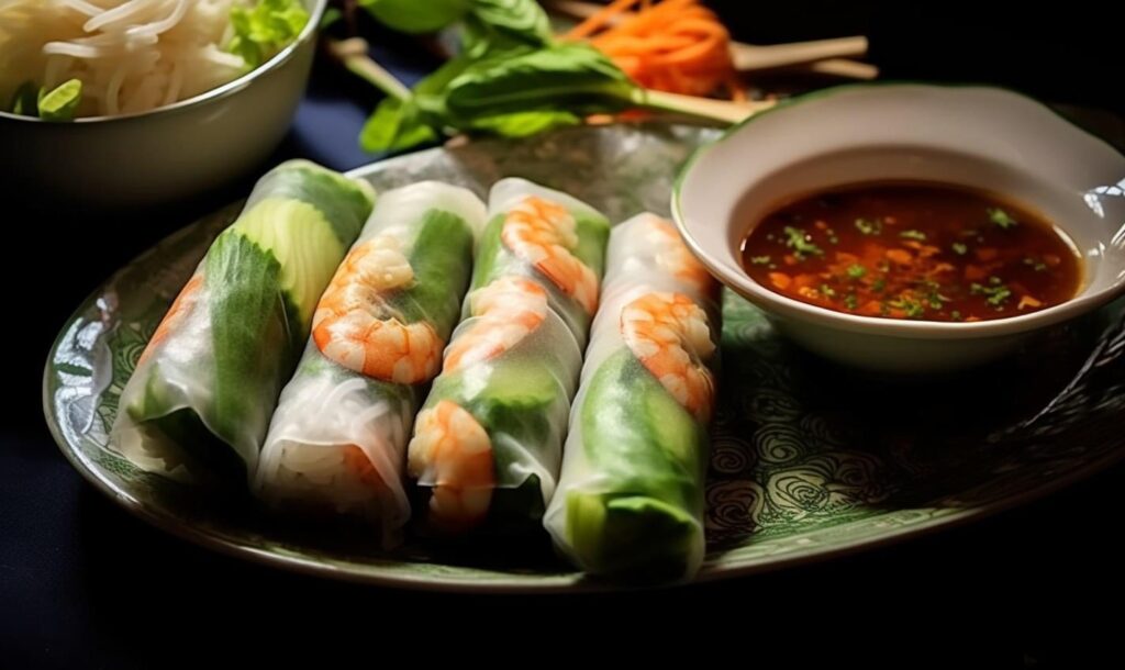 spring rolls, vietnamese food, shot by Sony, professional photoshot –ar 5:3