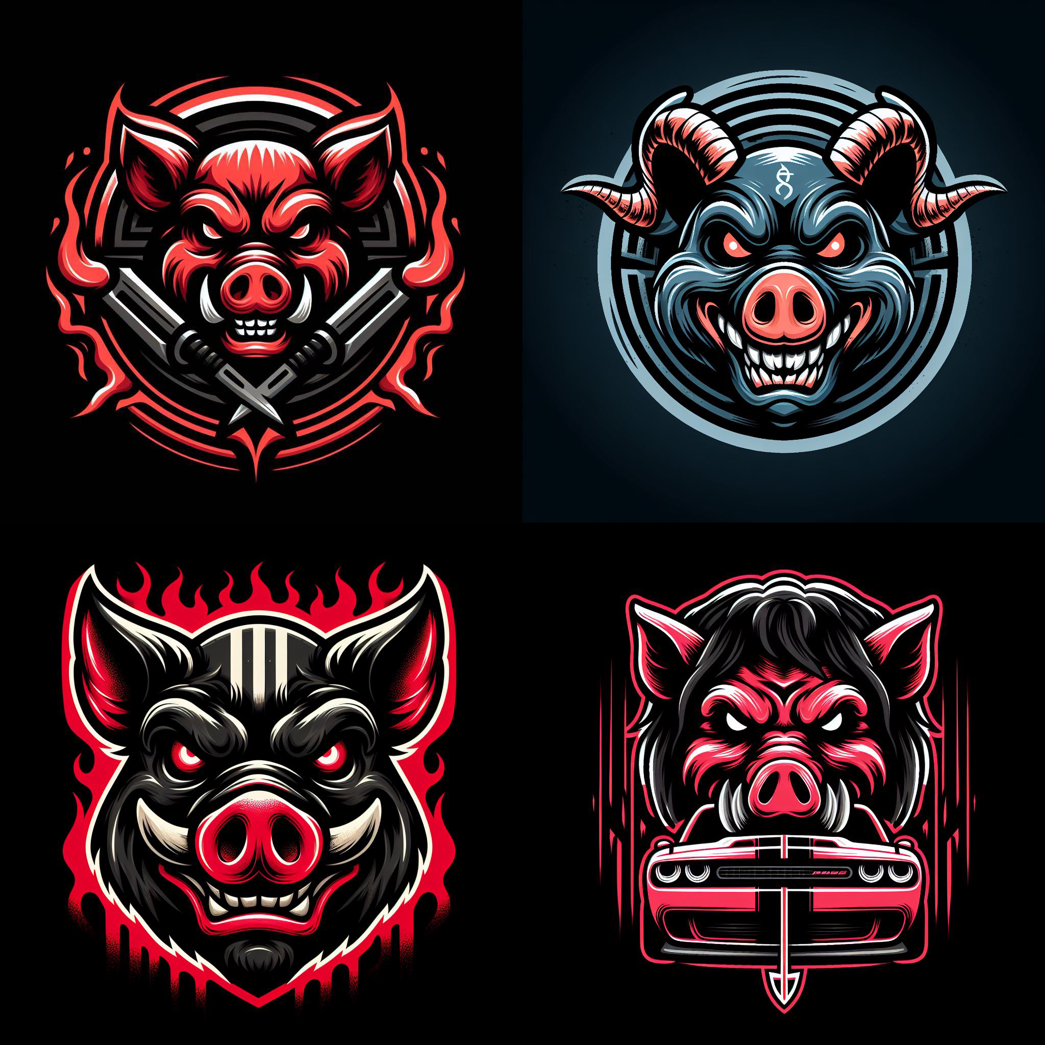 evil pig logo in the style of the dodge challenger hellcat and dodge challenger demon logo