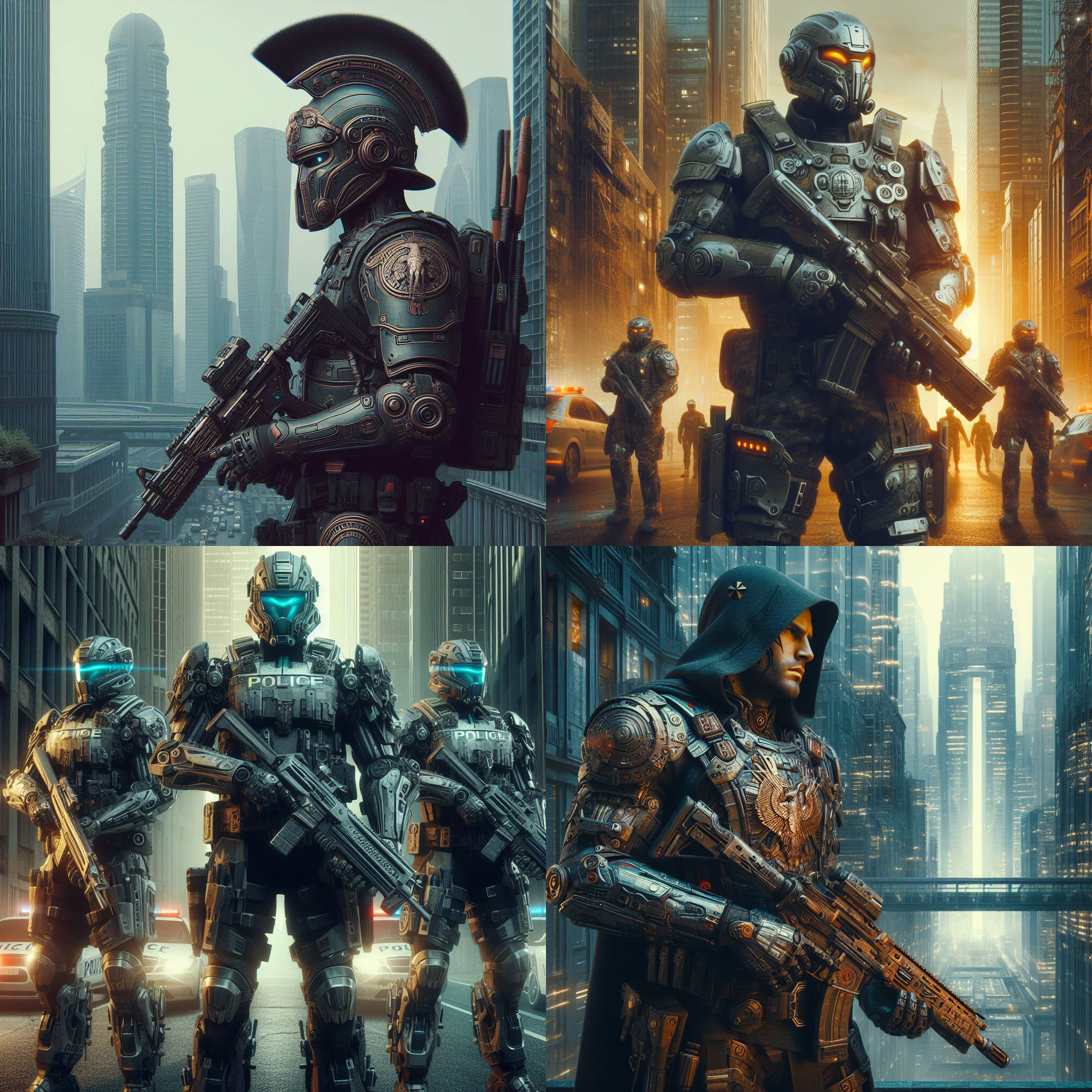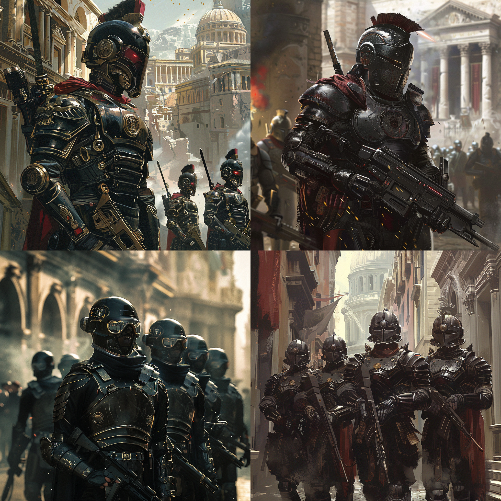 Ancient ROMAN empire never fell, futuristic ROMAN empire city police in full gear with weapons