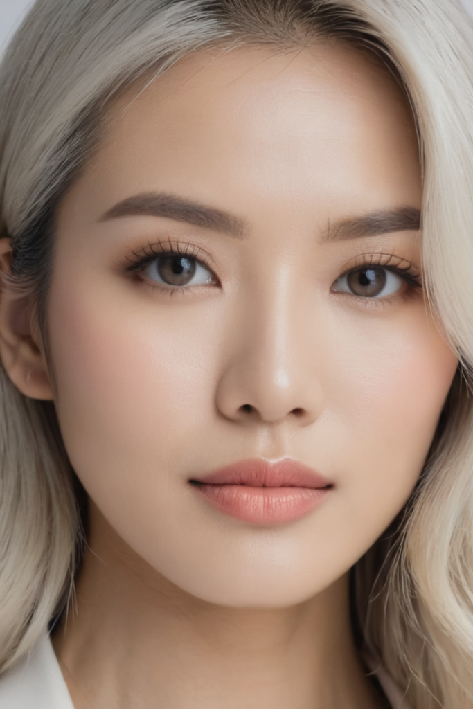 PROMPT: photo of a woman, 30 years old, close up of face, (light gray eyes:1.2), platinum blonde hair